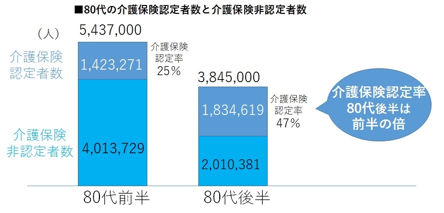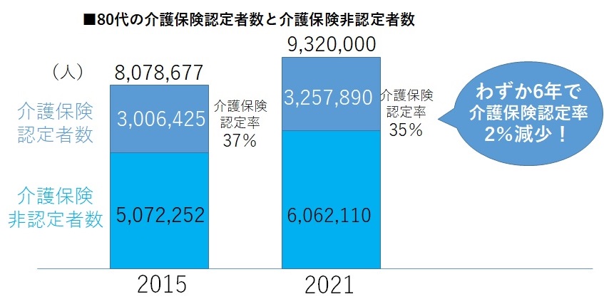 しかし2021年、80代の65%は介護保険「非」認定者である。