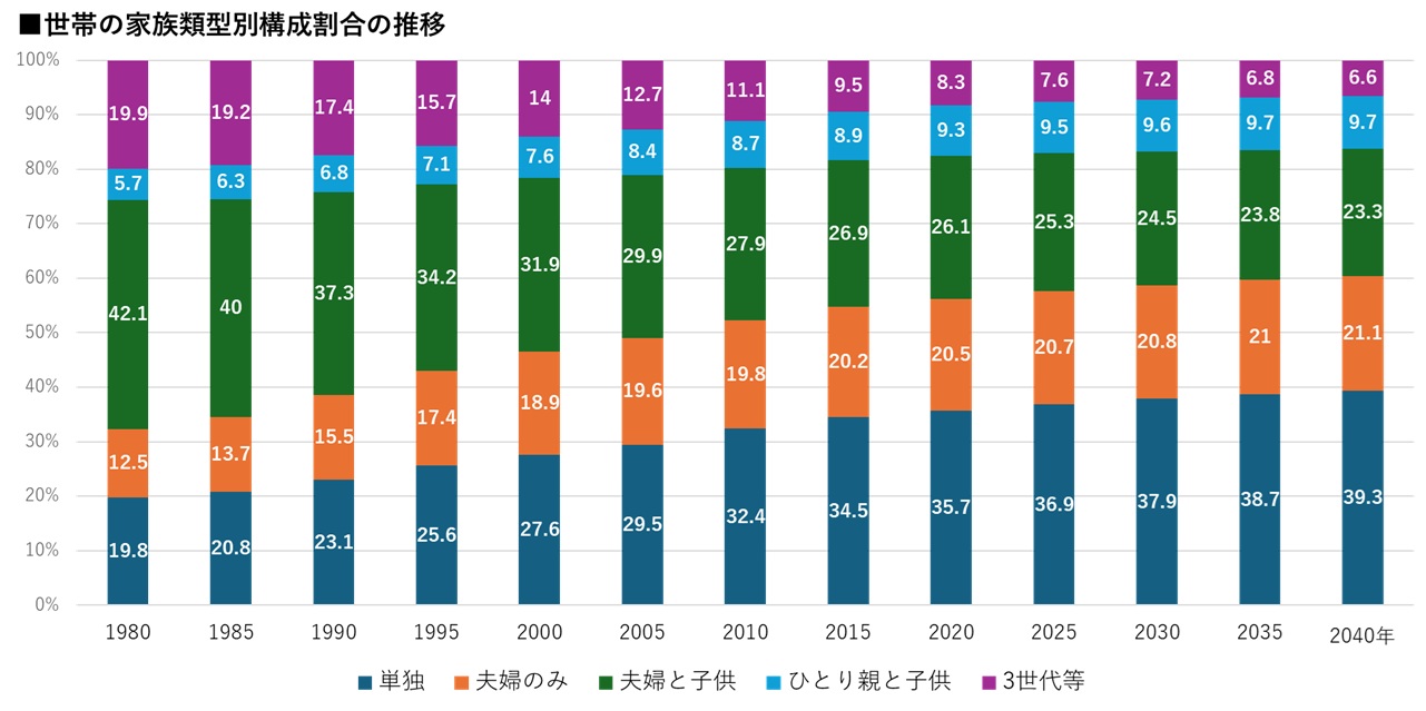 現在、人生のセンパイが身近にいる人は少ないだろう。老いのプロセスを身近に、生活の中で感じる機会は少ないと考えられる。三世代家族は少数派で現在は、7.6%。今、大人になっている世代がこどもの時分を考えても、2000年で14%。