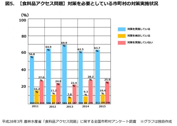 今回は、「アクセス問題」を受けて、市町村がどのような検討や対策を考え、実行に移しているかを農林水産省のアンケート調査からピックアップしてみたい。